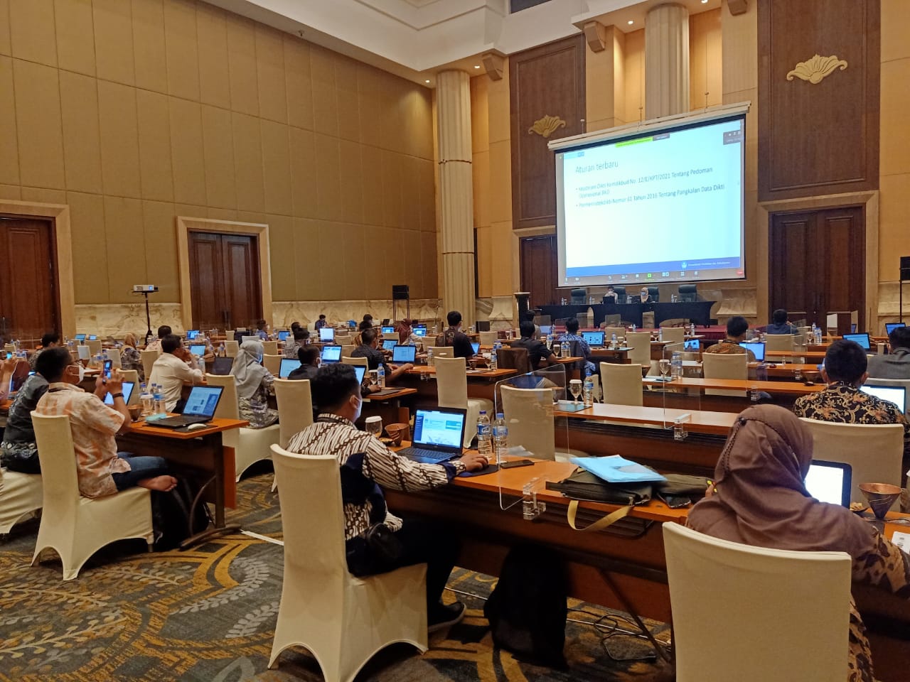 Kabid Penjamin Mutu Eksternal STTAL,Mayor Laut (KH) Zainal Syahlan, S.T., M.Kom. beserta Kabid PDPT STTAL, Lettu Laut (E) Karnolis Sunkara, S.Kom., mengikuti Workshop dan Asistensi Pelaporan Data Pangkalan Data Pendidikan Tinggi (PDDikti) Semester 2020-1 di lingkungan Direktorat Jenderal Pendidikan Tinggi, Kementerian Pendidikan dan Kebudayaan, yang dibuka oleh Sekretaris Direktorat Jenderal Pendidikan Tinggi (Sesditjen Dikti), Dr. Ir. Paristiyanti Nurwardani, M.P., yang diwakili oleh Kepala Sub Bidang Informasi dan Publikasi Dikti, Franova Herdiyanto, S.Kom., M.T.I., pada hari Jum’at s.d. Sabtu tanggal 9 s.d. 10 April 2021 bertempat di Ballroom Hotel Tentrem, Yogyakarta. Senin (12/04/2021).