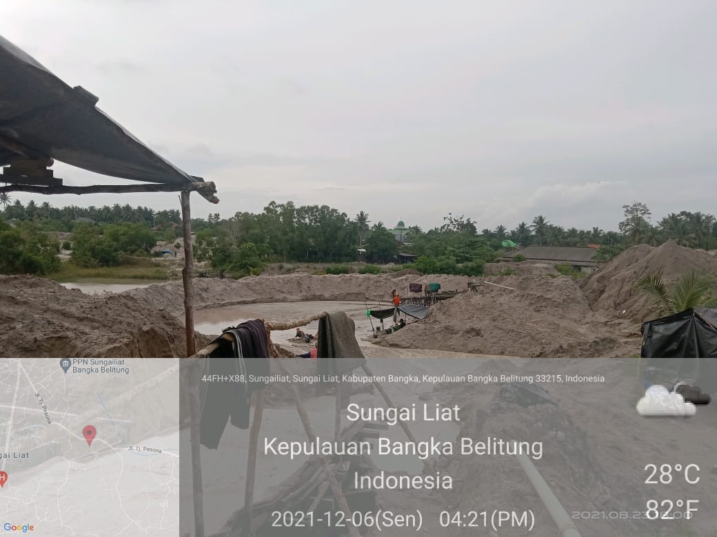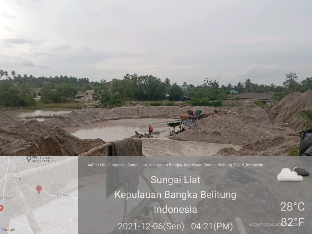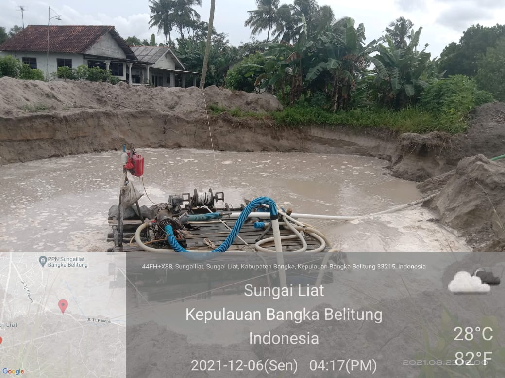 Maraknya Tambang Timah Ilegal semakin berkeliaran di Sungai Liat,salah satunya Kabupaten Bangka, Kepulauan Bangka Belitung. Di area tambang timah yang diduga ilegal tersebut terlihat ada mesin Robin, Dompeng, Ayla, selang penyedotan dan para pekerja yang sedang melakukan aktivitas pertambangan timah ilegal tersebut.