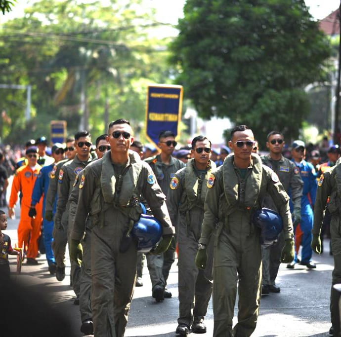 Pusat Penerbangan TNl Angkatan Laut (Puspenerbal) sebagai salah satuan Kotama TNI AL wilayah Surabaya, turut memeriahkan Kirab Kota HUT ke-78 TNl AL dengan menerjunkan personel, Alutsista, alat dan kelengkapan Iconik penerbangan lainnya dalam menyemarakkan Hari Jadi TNI AL tahun 2023 ini.