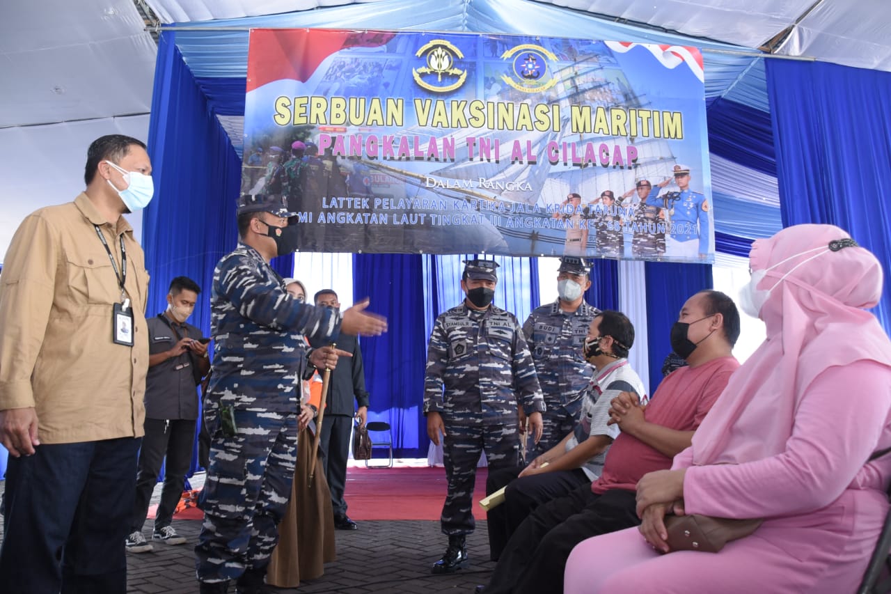 Serbuan vaksinasi yang menyiapkan 1150 vaksin dosis pertama ini lanjutnya, merupakan bentuk kerjasama antara Balai Kesehatan Lanal Cilacap dengan PT SBI (Solusi Bangun Indonesia) dengan sasaran masyarakat maritim Kabupaten Cilacap.