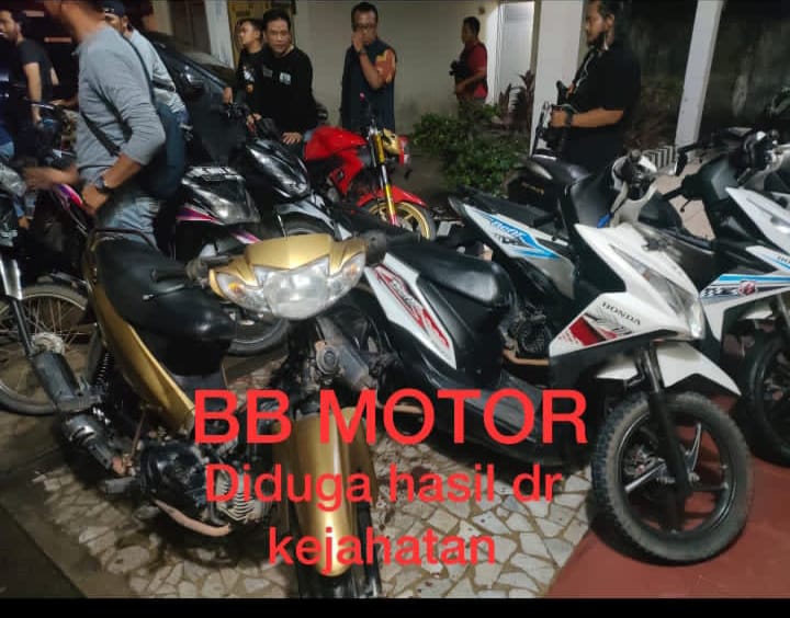Barang bukti yang diamankan petugas berupa 10 (sepuluh) unit sepeda motor berbagai merk, 2 buah golok samurai, 3 buah tombak, 2 buah keris, 1 buah obeng, 2 buah HP, 1 perangkat alat hisab sabu dan plastik klip, Bodi motor dan 1 buah Alat trapo las.