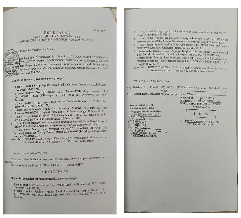 Apakah dokumen fotocopy tidak ada aslinya dapat menjadi bukti yang sah? Tanya tim penasihat hukum Arwan Koty.