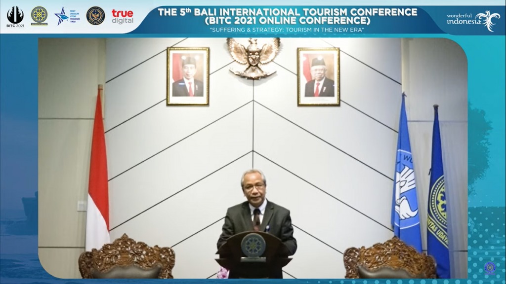 Tahun ini, pariwisata berada dalam situasi paling sulit karena pandemi covid-19. Kita semuanya menderita, tapi kita harus bertahan. Jadi, melalui konferensi ini, ada harapan untuk datang kembali dengan strategi di era pariwisata baru. The 5th BITC (Konferensi Pariwisata Internasional Bali Kelima) ini dilaksanakan dengan kerja sama antara Pusat Unggulan Pariwisata, Program Magister Pariwisata, Program Doktor Pariwisata, dan Pusat Penelitian Kebudayaan Universitas Udayana.
