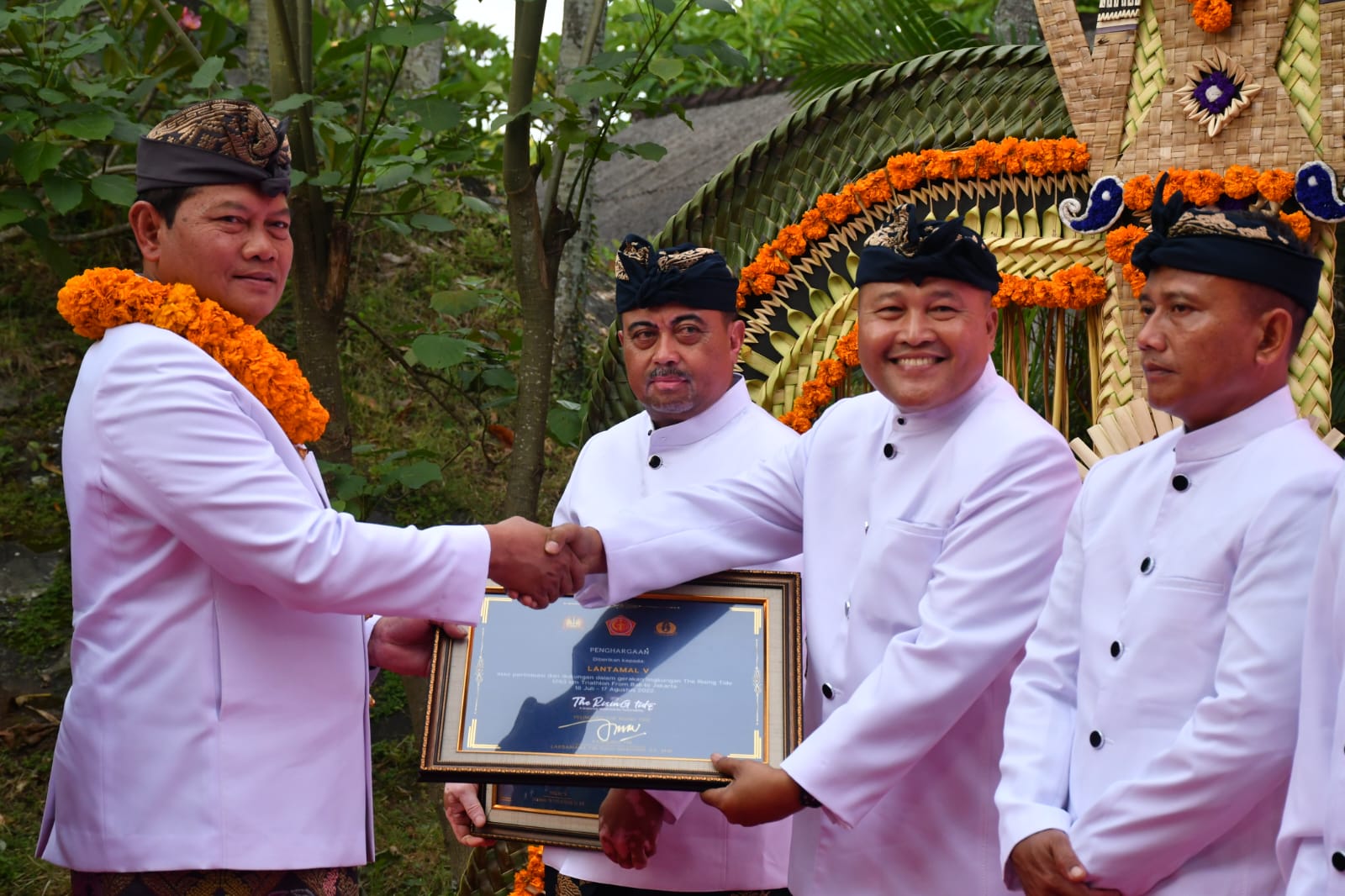 Komandan Pangkalan Utama TNI AL (Danlantamal) Laksamana Pertama TNI Supardi menerima penghargaan dari Puri Ageng Blahbatuh sebagai salah satu satuan yang mensukseskan “The Rising Tide” 2022 melalui program Mulung Parahita dengan kegiatan utama Solo Triathlon Bali-Jakarta sejauh 1.293 Km di Puri Ageng Blahbatuh, Gianyar, Bali, Selasa(21/2/2023).