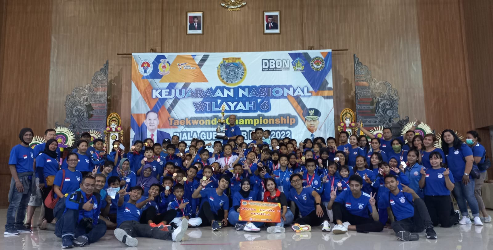 Kejuaraan Nasional Wilayah 6 Cabor Taekwondo yang memperebutkan Piala Gubernur Bali 2022 yang diikuti sebanyak 575 taekwondoin di 4 Provinsi usai digelar yang berakhir pada Minggu Petang (5/12/2022) di Aula Universitas Hindu Indonesia (UNHI) Denpasar Bali dari tanggal 3-5 Desember 2022, yang diikuti oleh 4 Provinsi yaitu Provinsi Nusa Tenggara Barat, Maluku Utara, Papua dan Provinsi Bali sebagai tuan rumah.