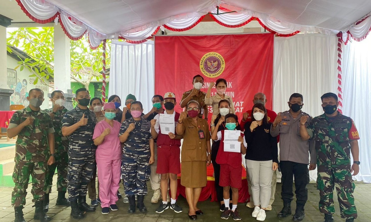 TNI Angkatan Laut (TNI AL) melalui tim Nakes Balai Kesehatan (BK) Pangkalan TNI AL (Lanal) Denpasar yang bekerja sama dengan Nakes Puskesmas Denpasar Selatan, menggelar vaksinasi covid-19 untuk anak berusia antara 6 hingga 11 tahun bertempat di SDN 13 Denpasar yang sebelumnya juga telah dilaksanakan di SDN 2 Sesetan Denpasar Selatan, RabU 22/12/2021.
