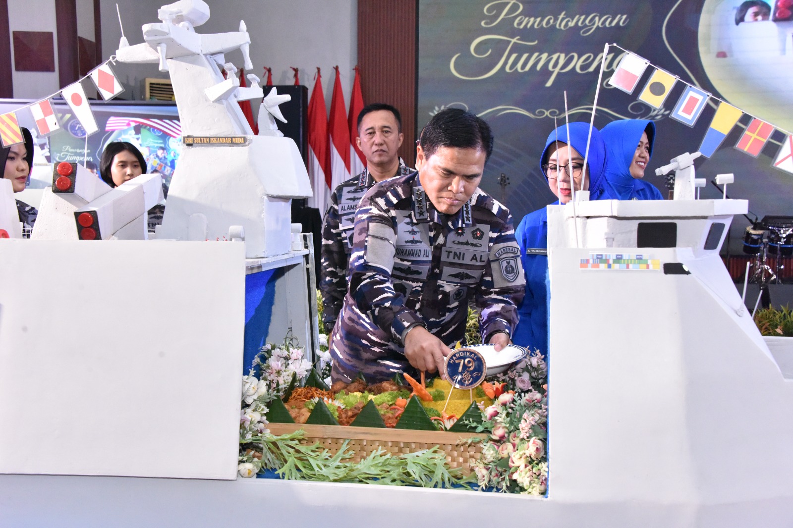 Komandan Pangkalan Utama TNI AL (Danlantamal) V Laksma TNI Dr. Arya Delano, S.E., M.Pd., M.Han., menghadiri peringatan puncak Hari Pendidikan Angkatan Laut (Hardikal) ke-79 tahun 2025 dengan menggelar acara tasyakuran yang dipimpin oleh Kepala Staf Angkatan Laut (Kasal) Laksamana TNI Dr. Muhammad Ali, S.E., M.M., M.Tr.Opsla., bertempat di Gedung R. Moeljadi, Kodiklatal, Bumimoro, Surabaya. Jumat (23/05/2025)