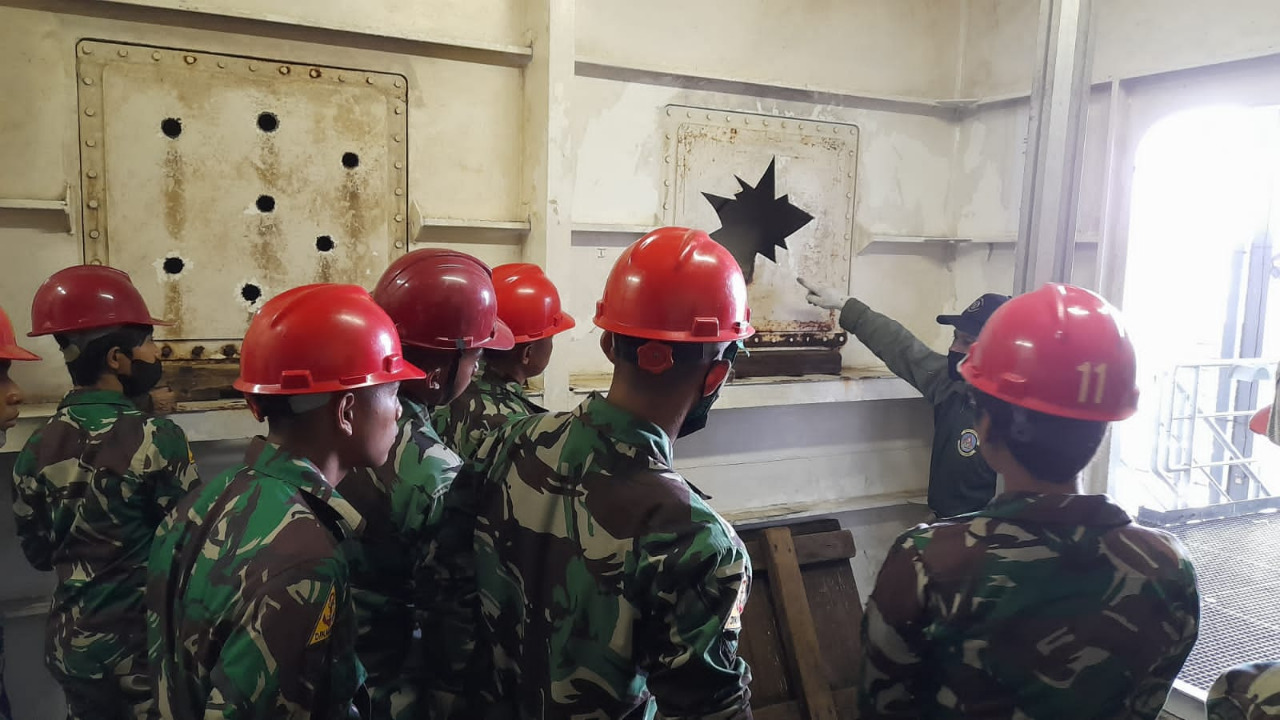Sejumlah 96 orang siswa Pendidikan Pertama Bintara (Dikmaba) TNI Angkatan Laut Angkatan XLI/1 yang saat ini sedang menempuh pendidikan Tahap Dasar Golongan Lanjutan (Sargolan) di Pusat Pendidikan Bantuan Administrasi (Pusdikbanmin) Kodikdukum Komando Pembinaan Doktrin, Pendidikan dan Latihan TNI AL (Kodiklatal) mengikuti Latihan Praktek (Lattek) Penyelamatan Kapal, Nuklir, Biologi dan Kimia (Peknubika) di Pusat Penyelamatan Kapal, Nuklir, Biologi dan Kimia (Puspeknubika) Kodiklatal Bumimoro Surabaya. Rabu (08/12/2021).