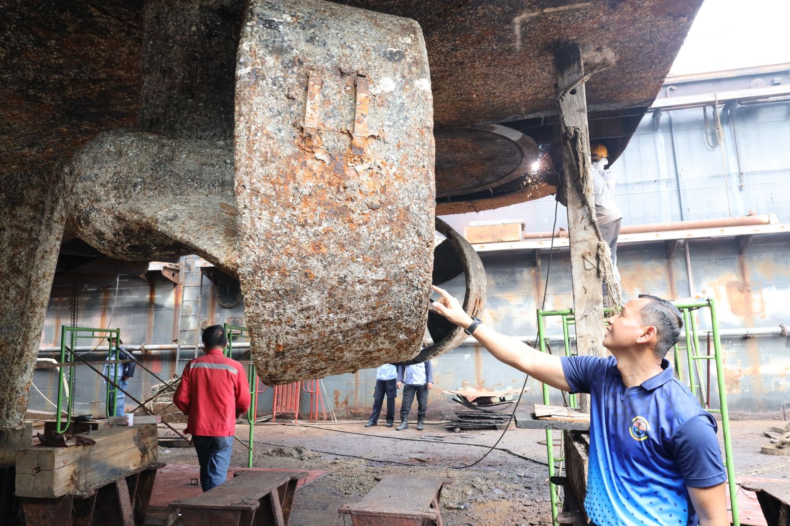 Peninjauan kemudian dilanjutkan dengan meninjau TD Merbabu yang sedang melaksanakan perbaikan di Dock Jayamahe yang berada di PT. PAL Indonesia.