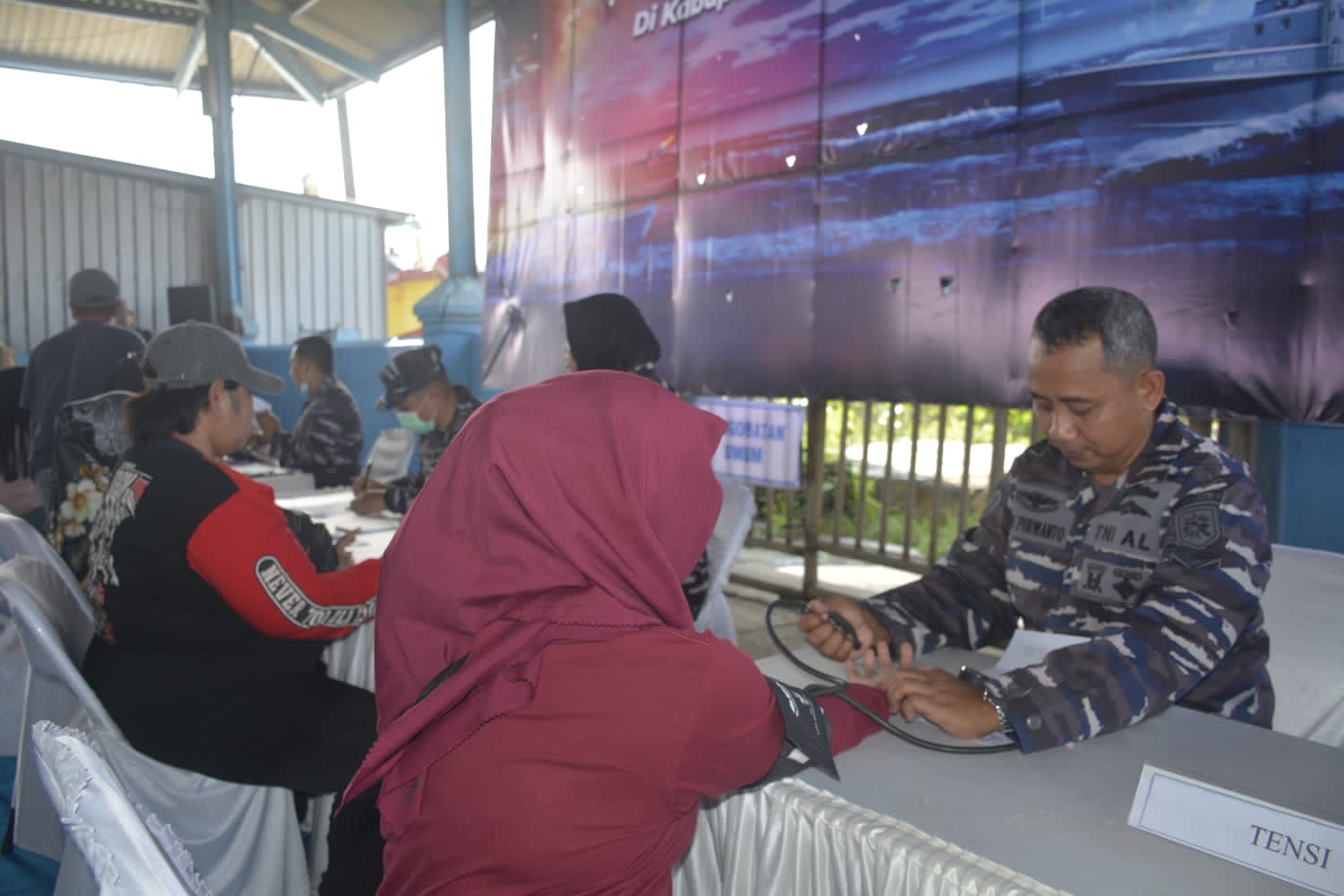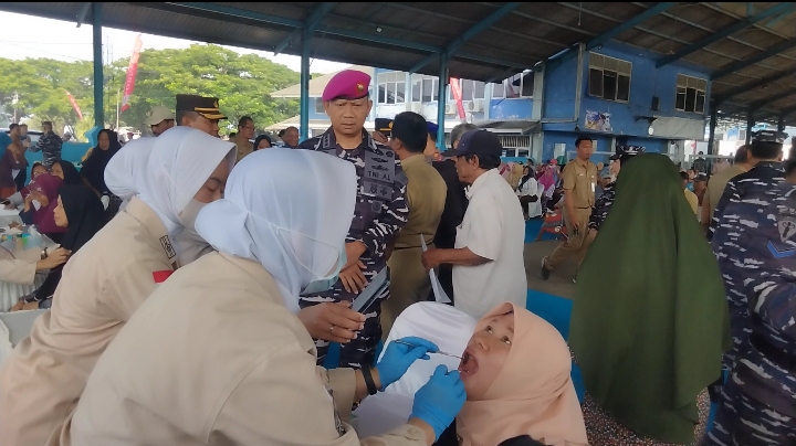 melalui Komando Daerah Angkatan Laut (Kodaeral) V Surabaya menggelar Bakti Sosial dan Bakti Kesehatan dalam rangka memperingati Hari Dharma Samudera Tahun 2026, bertempat di Tempat Pelelangan Ikan (TPI) Unit II Juwana, Kabupaten Pati, Jawa Tengah, Selasa (3/2/2026). Kegiatan yang dipusatkan di wilayah pesisir tersebut dipimpin oleh Aster Dankodaeral V Surabaya Kolonel Marinir Muharam Ahmad Fauzi, S.E., M.M., M.Tr.Opsla., CIQaR., sebagai wujud nyata pengabdian TNI Angkatan Laut kepada masyarakat terdampak musibah banjir.