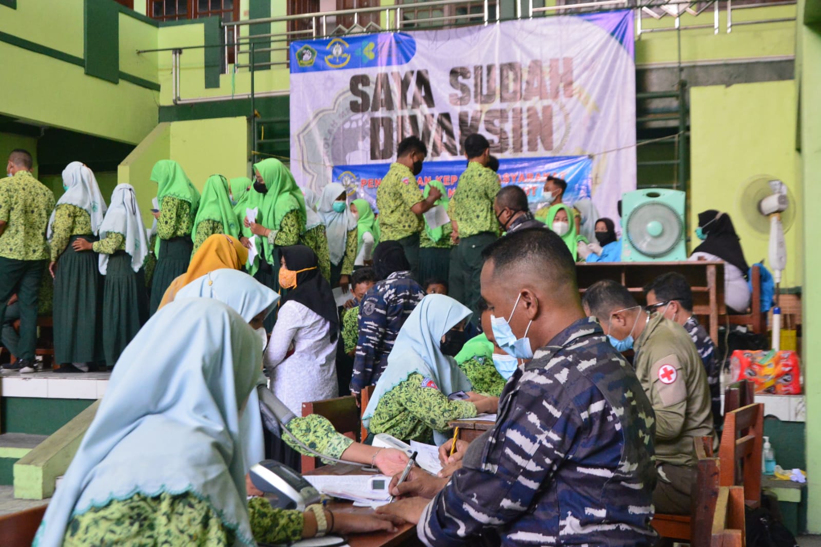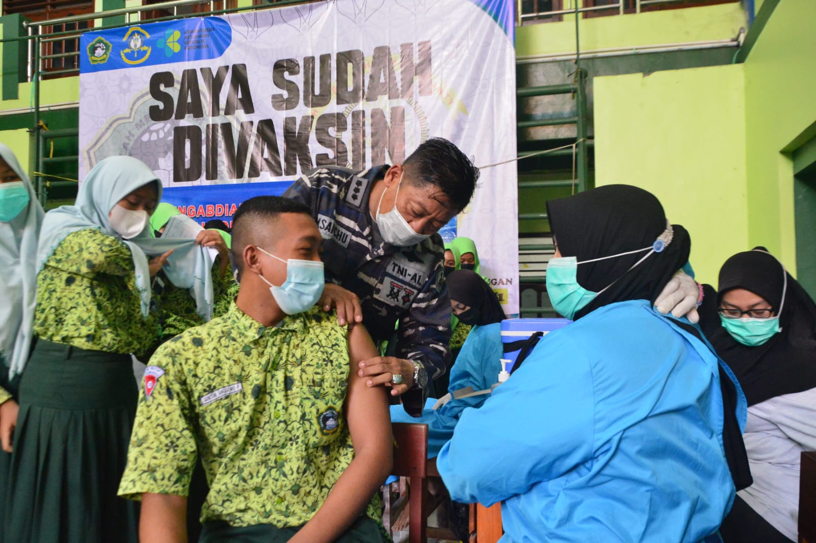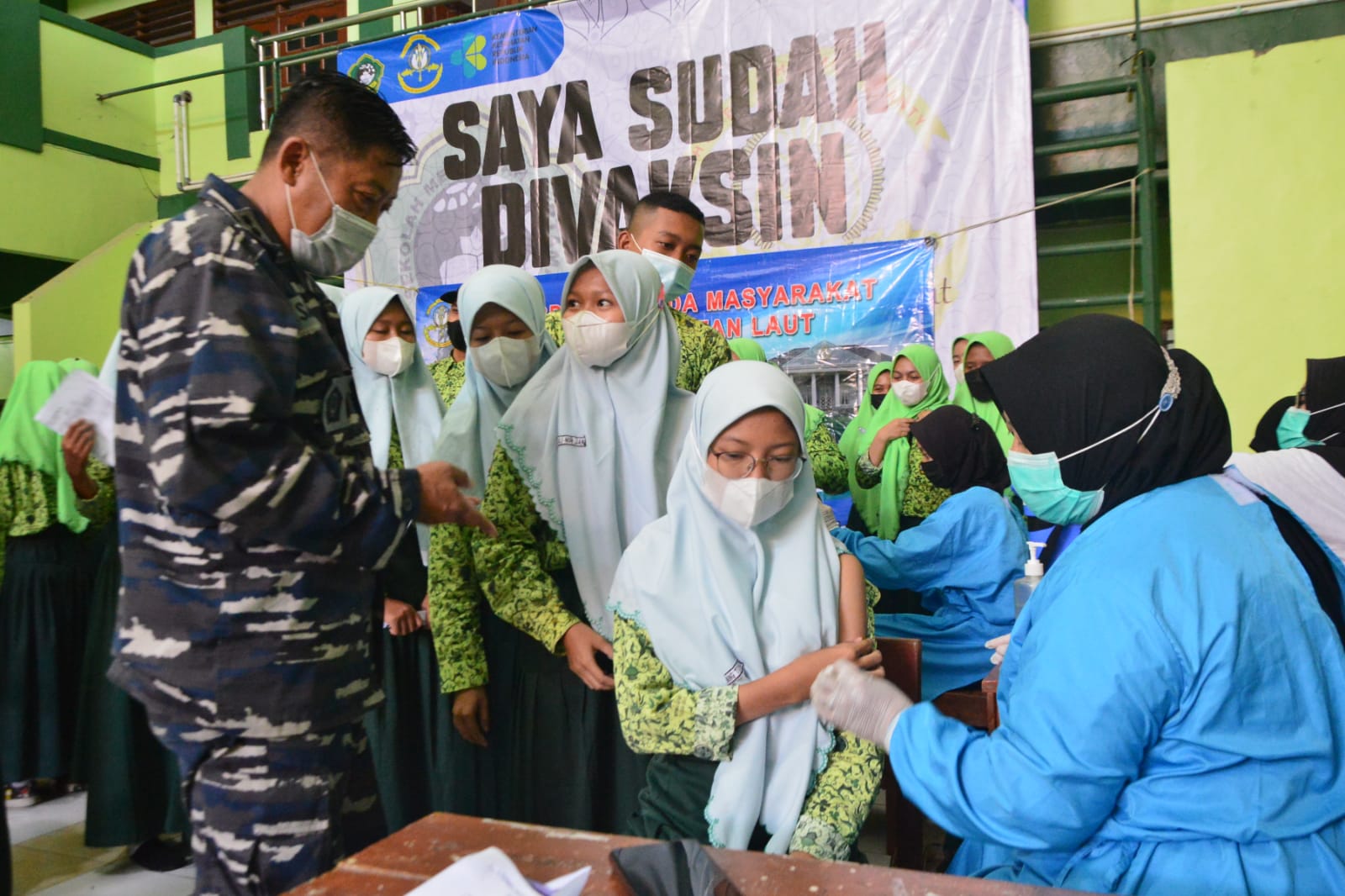 TNI AL terus kebut pelaksanaan program Vaksinasi Maritim dengan mengerahkan satuan satuannya di seluruh Indonesia guna mendukung pemerintah dalam percepatan penanganan Covid-19, kali ini vaksinator Akademi Angkatan Laut (AAL) menyasar ratusan siswa SMP Hasyim Azhari dan SMK Persatuan I di Jalan Raya Kepadangan No. 36 Tulangan Sidoarjo, Jawa Timur, kamis (28/10).