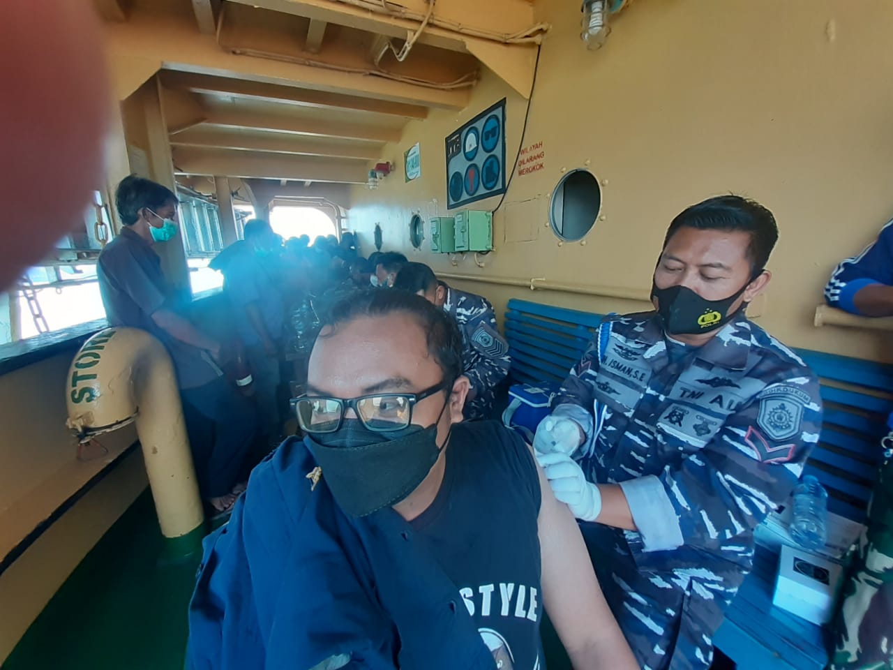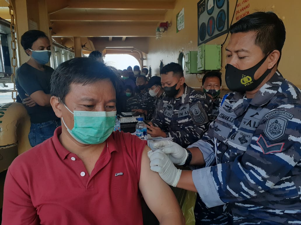 TNI AL dalam hal ini Komando Pembinaan Doktrin Pendidikan dan Latihan TNI AL (Kodiklatal) kembali menggelar serbuan Vaksinasi kepada masyarakat maritim dan pekerja sektor pelabuhan dalam rangka mempercepat Heard Imunity agar Indonesia betul-betul terbebas dari wabah Covid 19, adapun yang menjadi sasaran kali ini adalah Anak Buah Kapal (ABK) Kapal Motor (KM) Armada Permata yang saat ini sandar di Dermaga Berlian Barat Tanjung Perak Surabaya, Selasa, (2/11/2021).