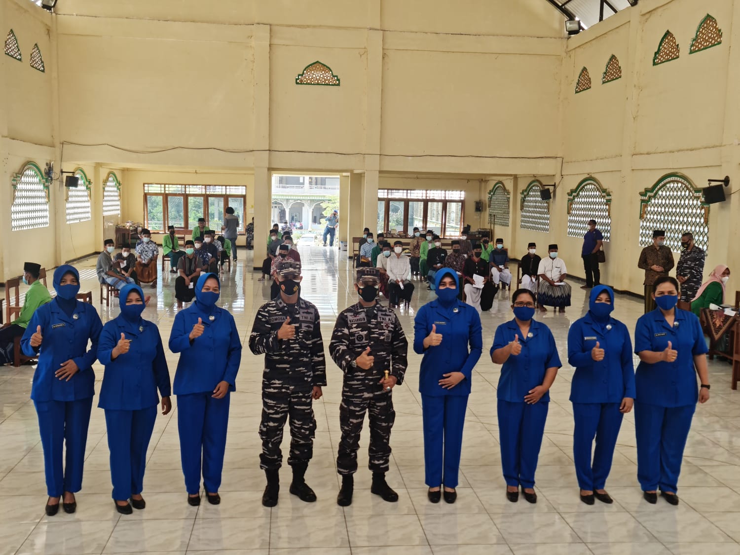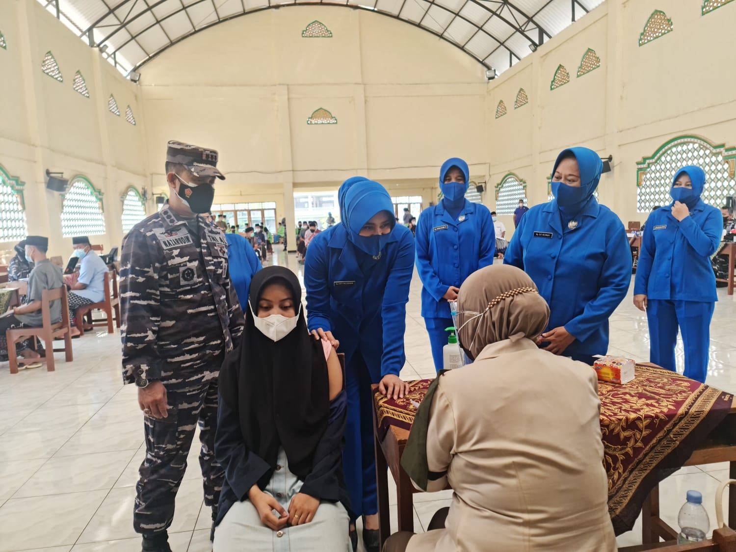 Komandan Pangkalan TNI Angkatan Laut (Danlanal) Semarang Kolonel Laut (P) Nazarudin CHRMP., didampingi Ketua Jalasenastri Cabang 4 Korcab V DJA II Ny. Raty Nazarudin meninjau Serbuan Vaksinasi Dosis kedua dengan sasaran santri/santriwati yang ada di di Pondok Pesantren Askhabul Kahfi Jl. Raya Cangkiran-Gunungpati, Kelurahan Karangmalang, Kecamatan Mijen Kota Semarang. Minggu (19/9/2021).
