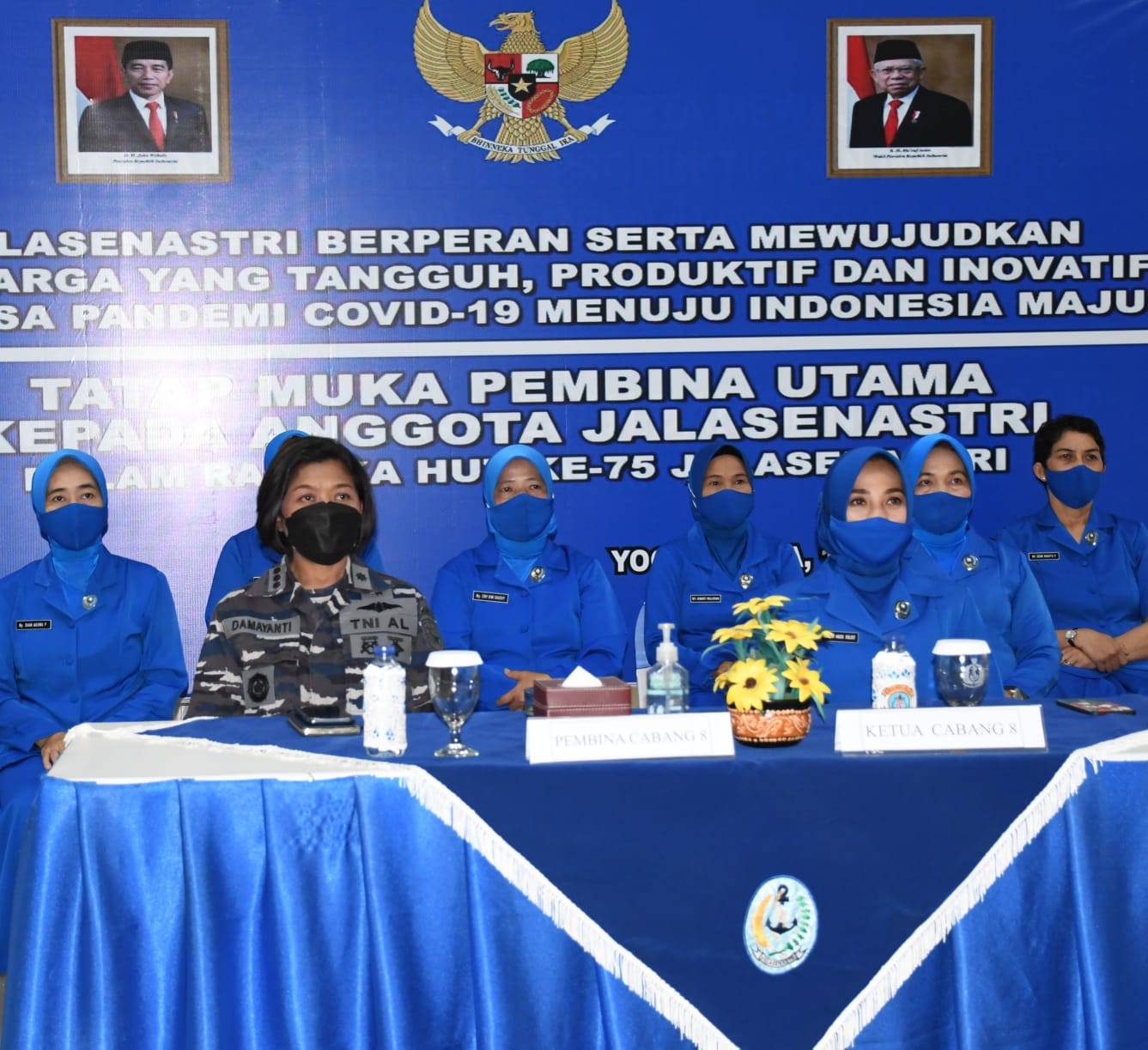 Bertempat di Aula Mako Pangkalan TNI AL (Lanal) Yogyakarta Jl. Melati Wetan No. 62 Baciro Yogyakarta, Ketua Pembina Cabang 8 Korcab V Daerah Jalasenastri Armada (DJA) II Kolonel Laut (KH/W) Damayanti, S.H.,M.M., CHRMP, melaksanakan tatap muka melalui Video Conference dengan Kepala Staf TNI Angkatan Laut (Kasal) Laksamana TNI Yudho Margono, S.E., M.M., selaku Pembina Utama Jalasenastri, Jumat (13/08/2021).