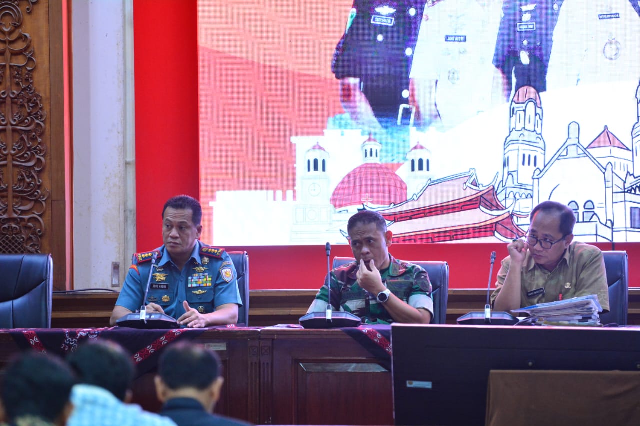 Menjelang hari Raya Idul Fitri 1445 H/2024 M guna menciptakan keamanan, kebersihan, dan ketentraman, TNI Angkatan Laut bersama Forkopimda Kota Semarang dalam hal ini Komandan Lanal Semarang Kolonel Laut (E) Joko Andriyanto, S.T., M.Tr. Hanla., M.A.P. melaksanakan rapat koordinasi yang dipimpin oleh Sekda Kota Semarang Bapak Iswar Aminuddin, M.T. bertempat di ruang Lokakrida Gedung Moch. Ihsan lantai 8 Balaikota Semarang. Selasa, (02/04/2024).