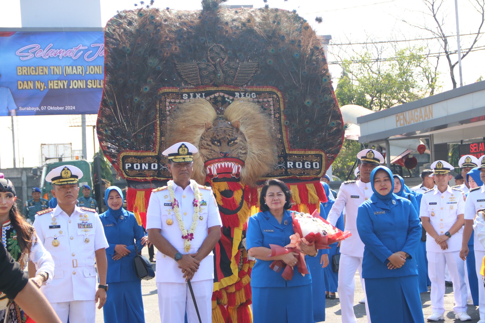Suasana haru dari seluruh prajurit dan PNS Lantamal V mengiringi pelepasan tersebut. Sebelum meninggalkan Lantamal V, Brigjen TNI (Mar) Joni Sulistiawan, didampingi Ny. Heny Joni Sulistiawan, mengucapkan terima kasih dan berpesan kepada seluruh jajaran Lantamal V, agar selalu semangat dalam melaksanakan tugas serta menjaga kekompakan dan kebersamaan.