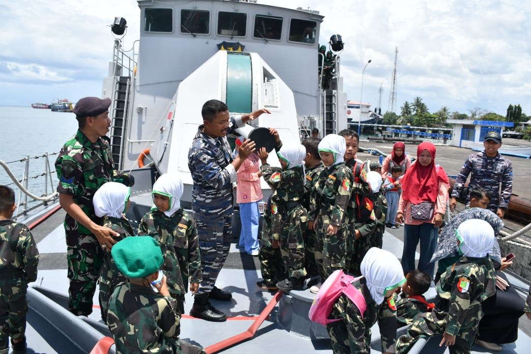Guna mengembangkan jiwa bahari sejak usia dini, murid Taman Kanak-Kanak (TK) Darul Falah 1 Pesucen Banyuwangi yang didampingi Kepala Sekolahnya Ny. Insiyah kunjungi Mako Lanal Banyuwangi dan KRI Singa-651 yang sandar di Dermaga PT. Sumitama Intinusa DMK Ketapang Banyuwangi. (6/3/2023).