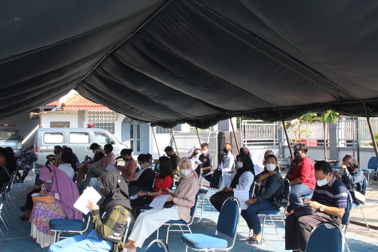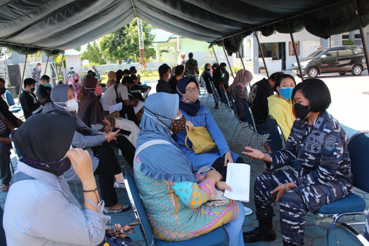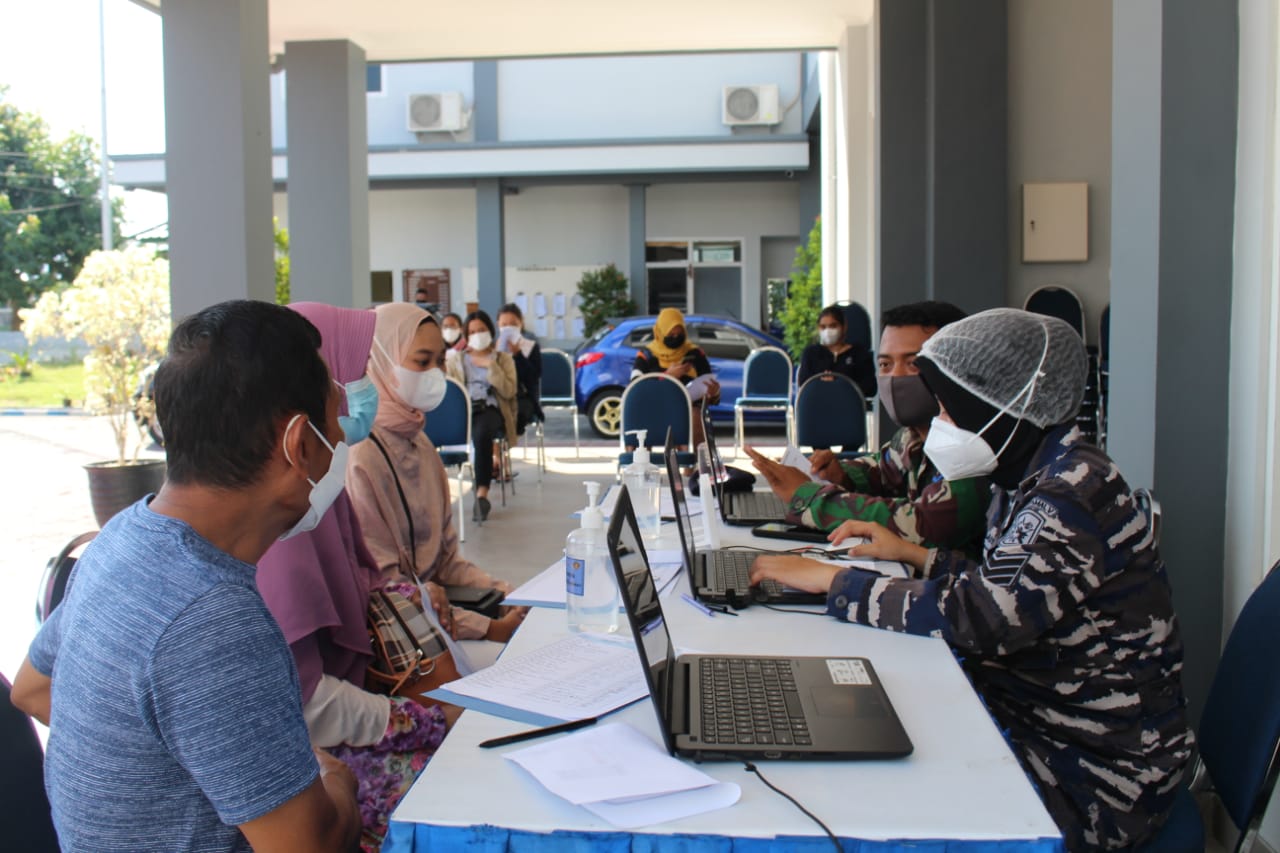 Pelaksanaan serbuan Vaksinasi Covid-19 di Markas Komando Lanal Yogyakarta semakin digencarkan semakin diserbu peserta dan mendapat respon positif dari masyarakat, peserta masih didominasi Mahasiswa dan Masyarakat sekitar Wilayah D.I Yogyakarta dengan target pencapaian hari ini sekitar 200 orang penerima Vaksin, Sabtu (24/07/21).