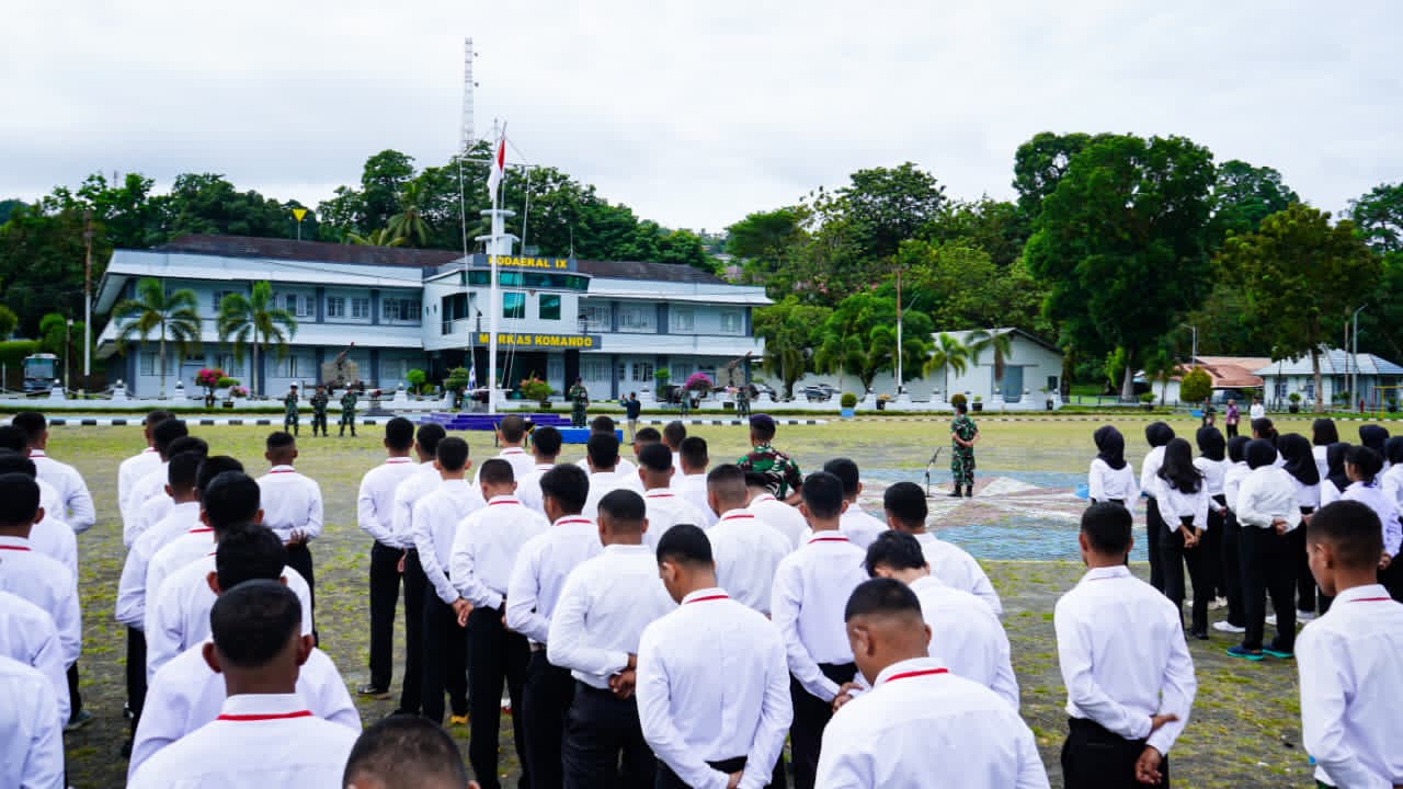 Wakil Komandan Komando Daerah Angkatan Laut lX (Wadan Kodaeral IX), Laksma TNI Dr. Muhammad Risahdi selaku Wakil Ketua Panitia Daerah mewakili Komandan Kodaeral IX, Laksda TNI Hanarko Djodi Pamungkas, S.H. memimpin Upacara Penandatangan dan Pembacaan Pakta Integritas Calon Bintara dan Tamtama PK TNI AL Gelombang I TA. 2026 di Lapangan Apel Kodaeral IX, Senin (12/1/2026).