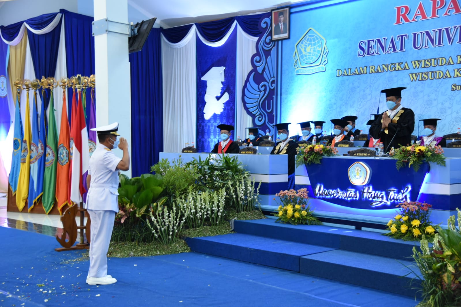 Wakil Komandan Komando Pembinaan Doktrin Pendidikan dan latihan TNI AL (Wadan Kodiklatal) Laksamana Muda TNI Agus Hariadi mewakili Kepala Staf Angkatan Laut (Kasal) menghadiri rapat terbuka Senat Universitas Hang Tuah (UHT) Surabaya dalam rangka Wisuda Ke-54 Program Diploma III dan Strata 1 serta Wisuda Ke-32 Program Strata 2 Semester Ganjil TA 2020/2021, Sabtu, (23/10/2021).