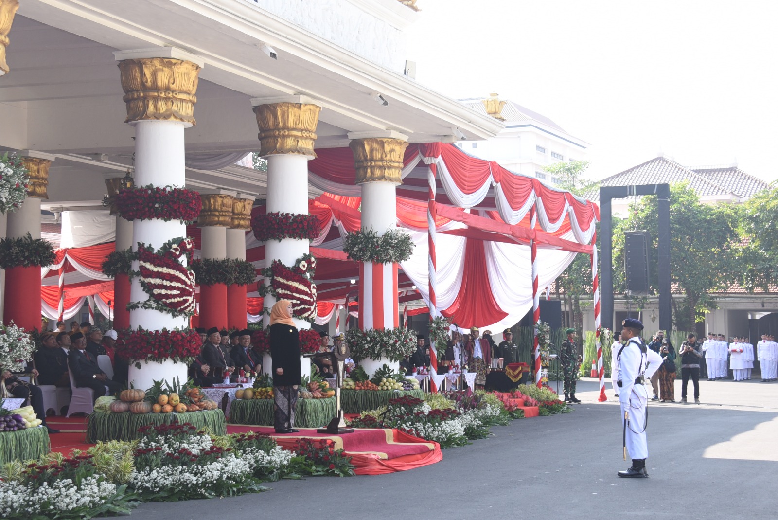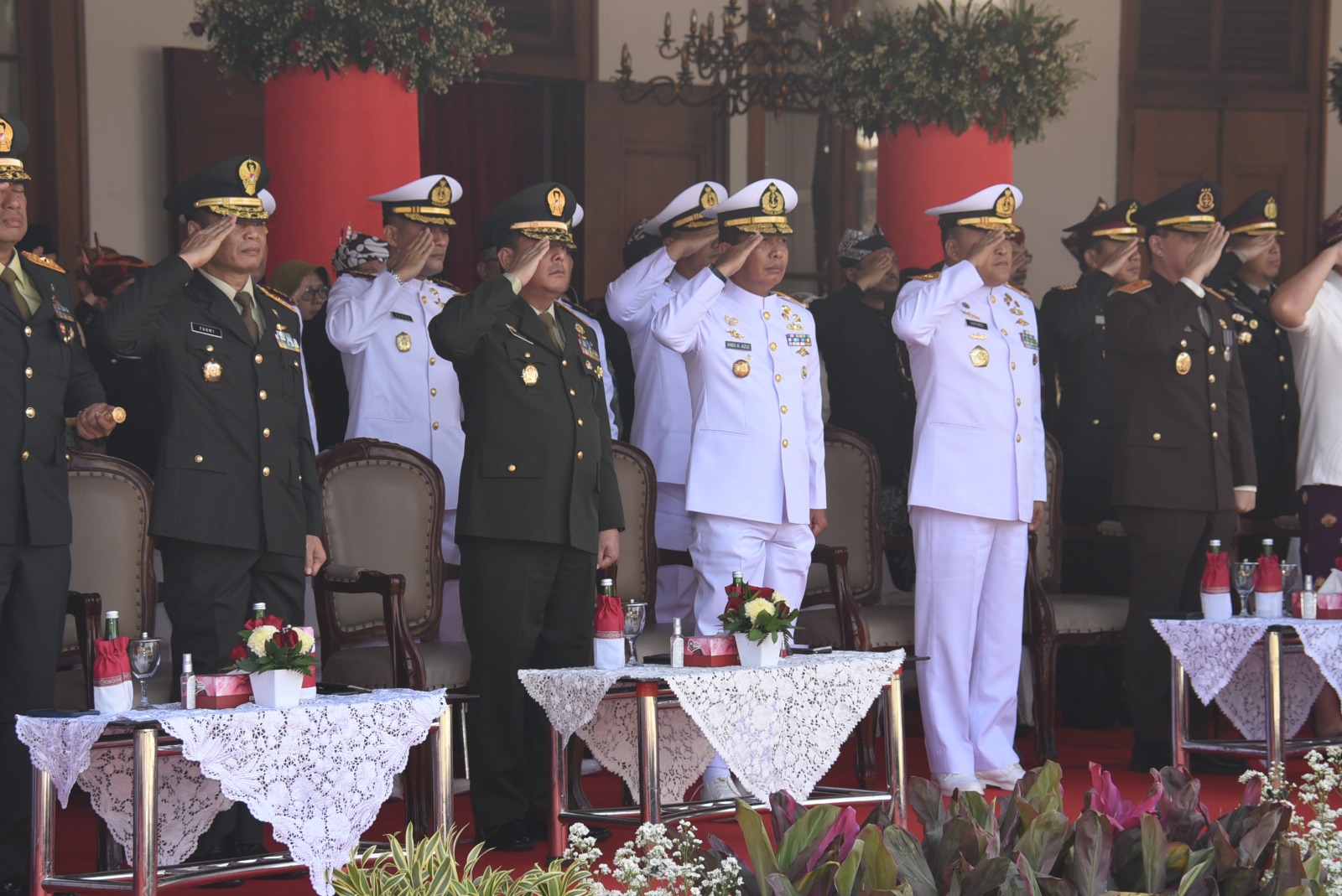 Upacara peringatan Harlah Pancasila yang mengusung tema,”Gotong Royong Membangun Peradaban dan Pertumbuhan Global,” ini dihadiri Para Forum Komunikasi Pimpinan Daerah (Forkopimda) Jawa Timur dan Pejabat terkait lainnya.