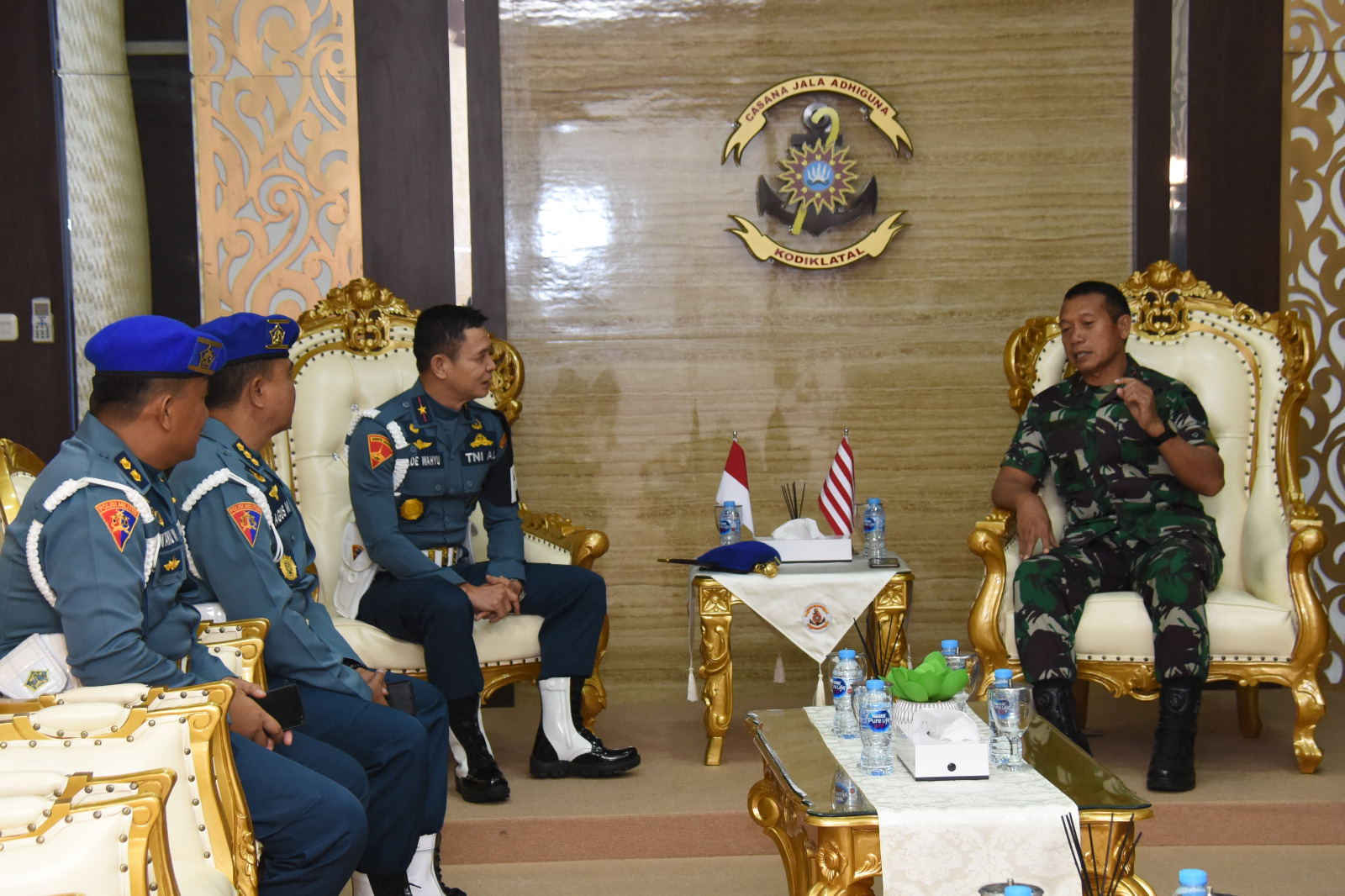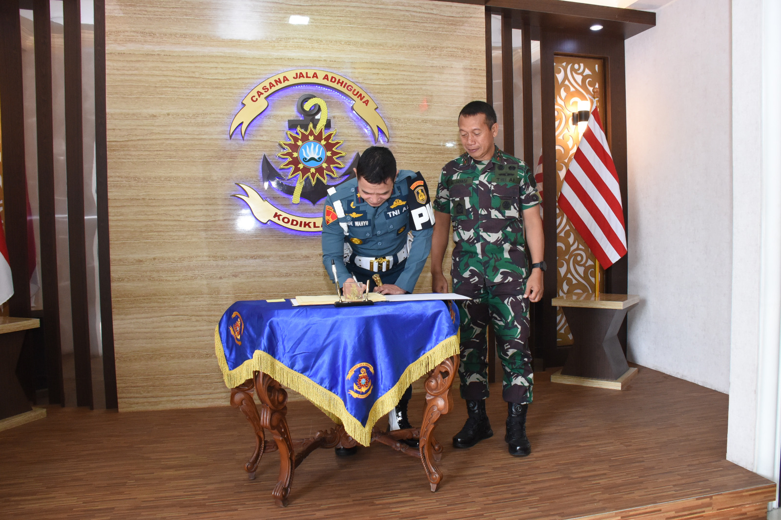 Bertempat di Lobby VIP Mako Kodiklatal, Wadan Kodiklatal yang didampingi oleh Irkodiklatal Brigjen TNI (Mar) Amir Faisol, Dandenma, Danpusdikpomal serta Dandenprov Kodiklatal, menyambut dengan hangat kunjungan tersebut.