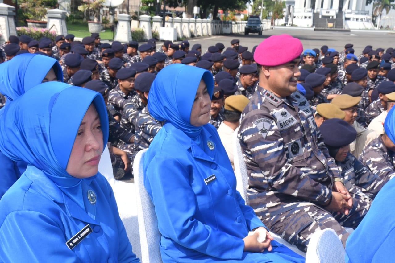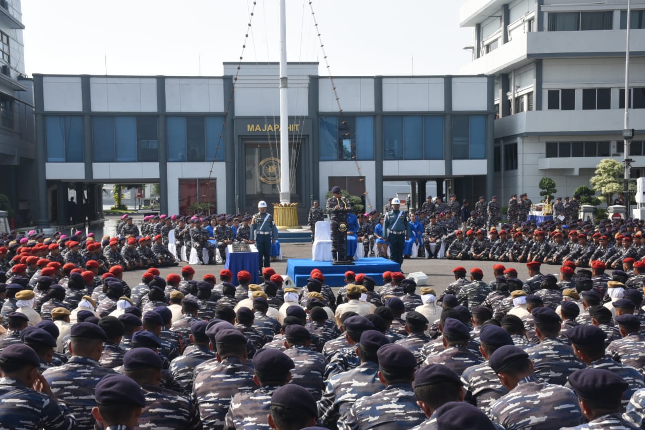 Komandan Pangkalan Utama TNI Angkatan Laut (Danlantamal) V Berigjen TNI Marinir Joni Sulistiawan, S. H., M. Han diwakili Wakil Komandan (Wadan) Lantamal V Kolonel Marinir Baedhowi Oktafidia didampingi Ny. Helen Bawdhowi menghadiri Exit Briefing dan Apel Khusus Pangkoarmada II Laksamana Muda TNI Yayan Sofian, S.T., M.Si., CHRMP., M.Tr.Opsla., di Dermaga Madura Koarmada II Ujung, Surabaya. Jumat (15/12/2023).