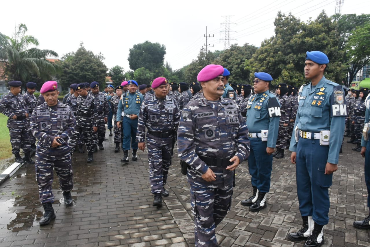 Dalam rangka pengamanan pilpres tahun 2024, Komandan Pangkalan Utama TNI AL (Danlantamal) V Brigjen TNI Marinir Joni Sulistiawan, S. H., M. Han., diwakilkan Wadan Lantamal V Kolonel Marinir Baedhowi Oktafidia memimpin Apel Gelar Kesiapan Pengamanan Pilpres Tahun 2024 yang diikuti oleh para perwira, bintara, tamtama dan pegawai negeri sipil lantamal V di lapangan Mako Lantamal V, Perak, Surabaya. Rabu (07/02/2024).