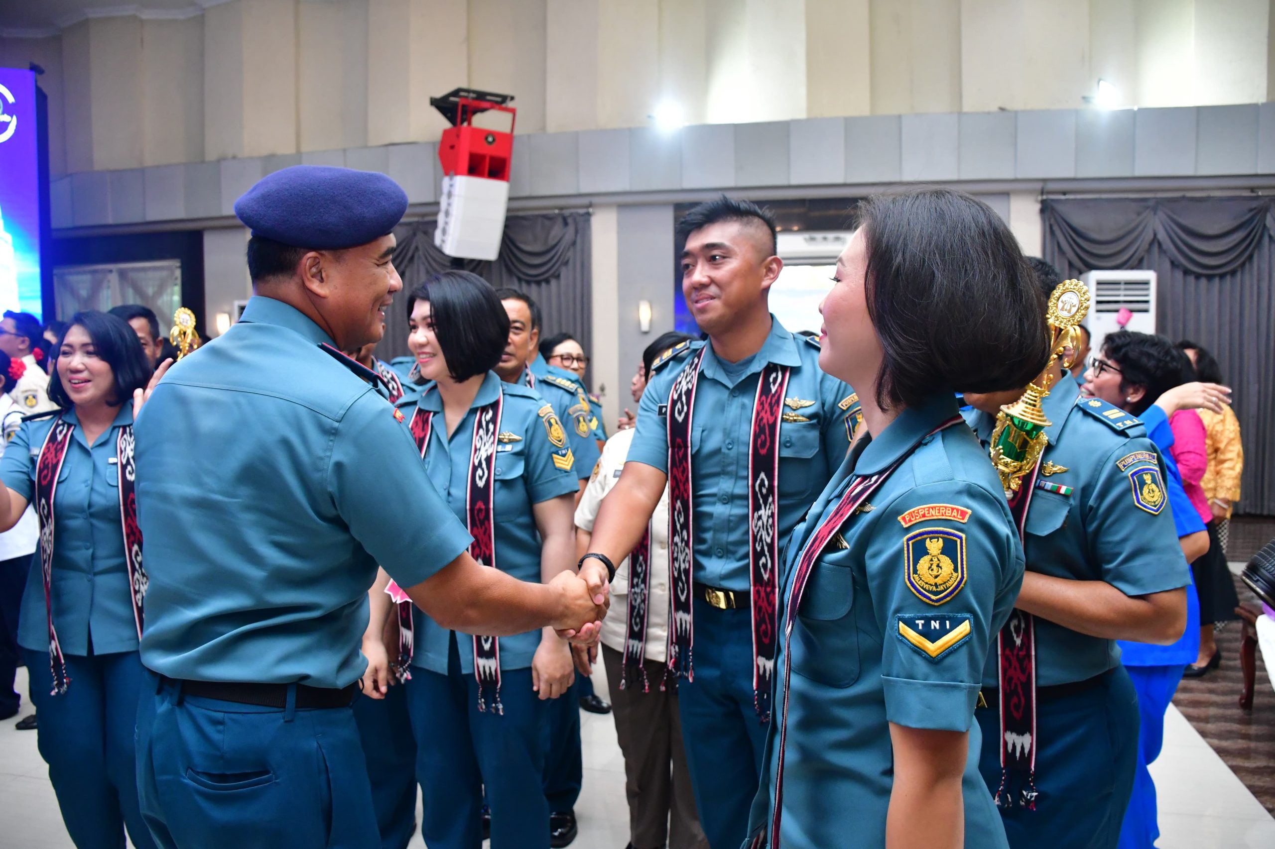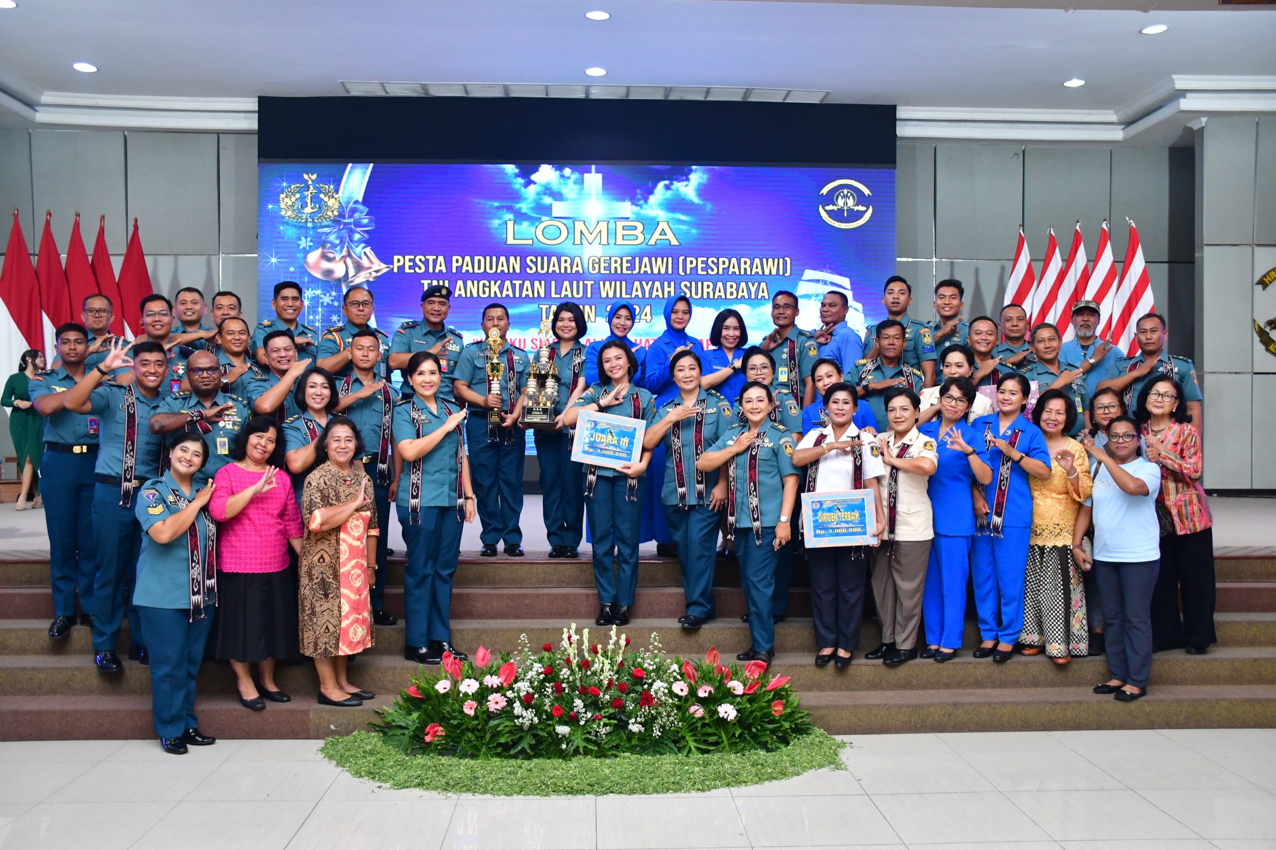Wakil Komandan Pusat Penerbangan TNl Angkatan Laut (Wadan Puspenerbal), Laksma TNl Bayu Alisyahbana didampingi Ny. Dicca Bayu Alisyahbana mewakili Komandan Puspenerbal, Laksda TNl Sisyani Jaffar menghadiri Lomba Pesta Paduan Suara Gerejawi (Pesparawi) Gabungan Kotama TNl AL wilayah Surabaya tahun 2024, Selasa (26/11/2024).