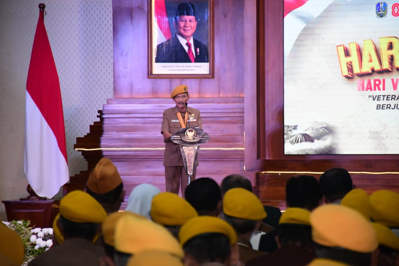 Acara Peringatan Hari Veteran Nasional Tingkat Provinsi Jawa Timur Tahun 2025 yang dihadiri sedikitnya 150 orang tamu undangan ini, pimpinan Gubernur Jawa Timur, Dr. Hj. Khofifah Indar Parawansa.