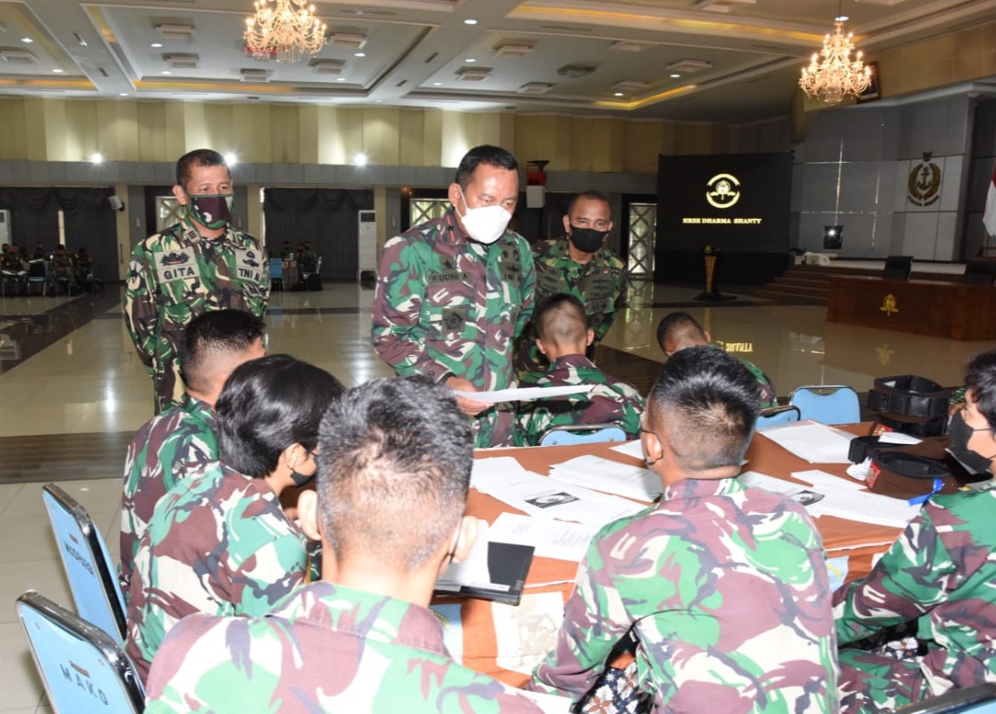 Wakil Gubernur Akademi TNI Angkatan Laut (AAL), Laksamana Pertama TNI Rudhi Aviantara, S.E., M.Si., M.Tr (Han), meninjau pelaksanana Latihan Praktek Kepemimpinan l (Latpim l) Taruna AAL Tingkat lV Angkatan ke-68 yang memasuki hari ketiga di gedung Mas Pardi, Kesatrian AAL Bumimoro, Surabaya, Rabu (11/8).