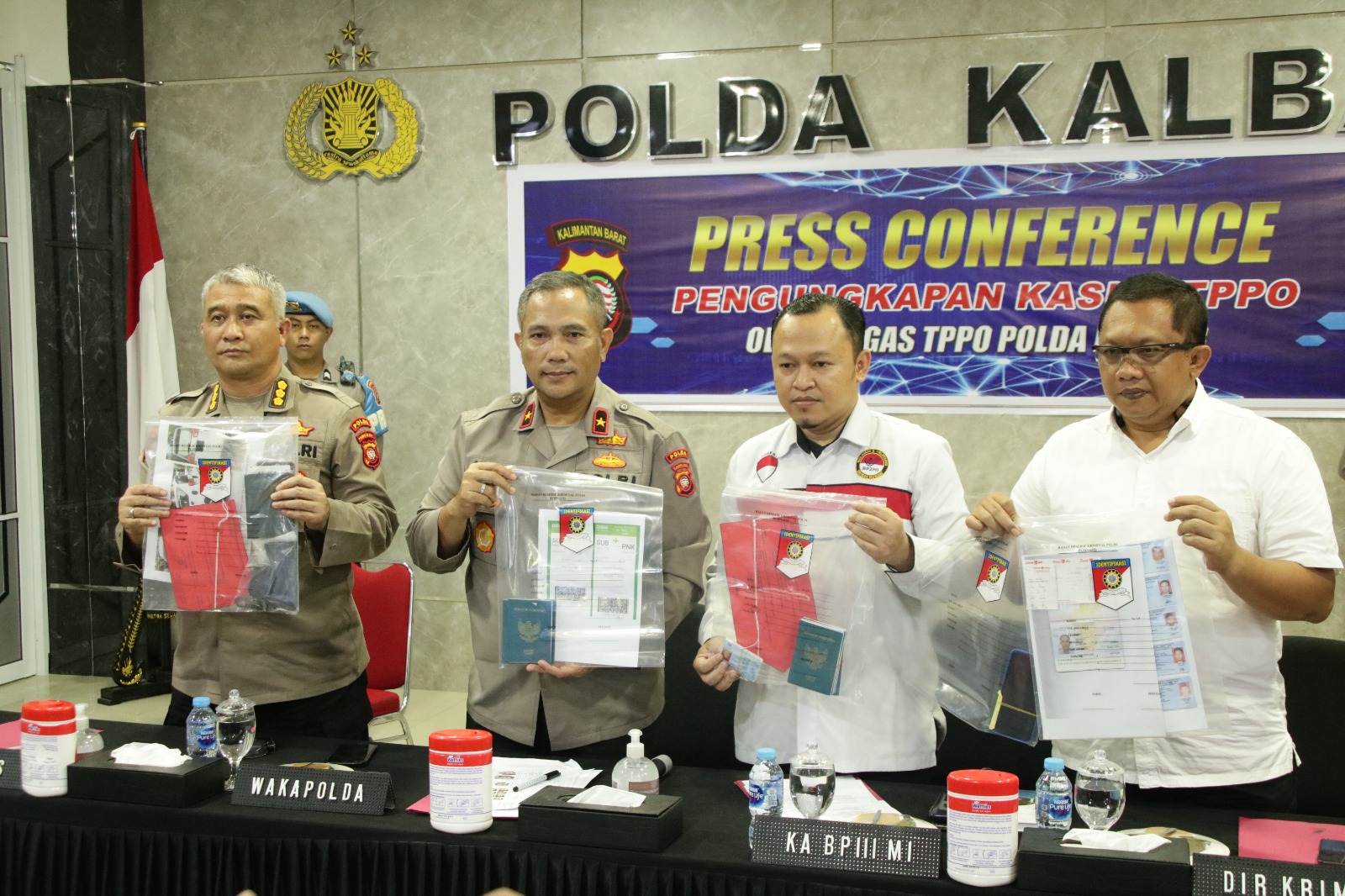 Kepolisian Daerah Kalimantan Barat kembali mengadakan Press Conference keberhasilan Pengungkapan TPPO (Tindak Pidana Perdagangan Orang). Kegiatan ini dilaksanakan di Balai Kemitraan Polda Kalbar yang dipimpin langsung oleh Waka Polda Kalbar Brigjend Pol Asep Safrudin S.I.K. didampingi oleh Karo OPS Polda Kalbar, Dir Reskrimum dan Kepala BP3 MI Kalbar, Fadjar Alimin. (14/6/2023)