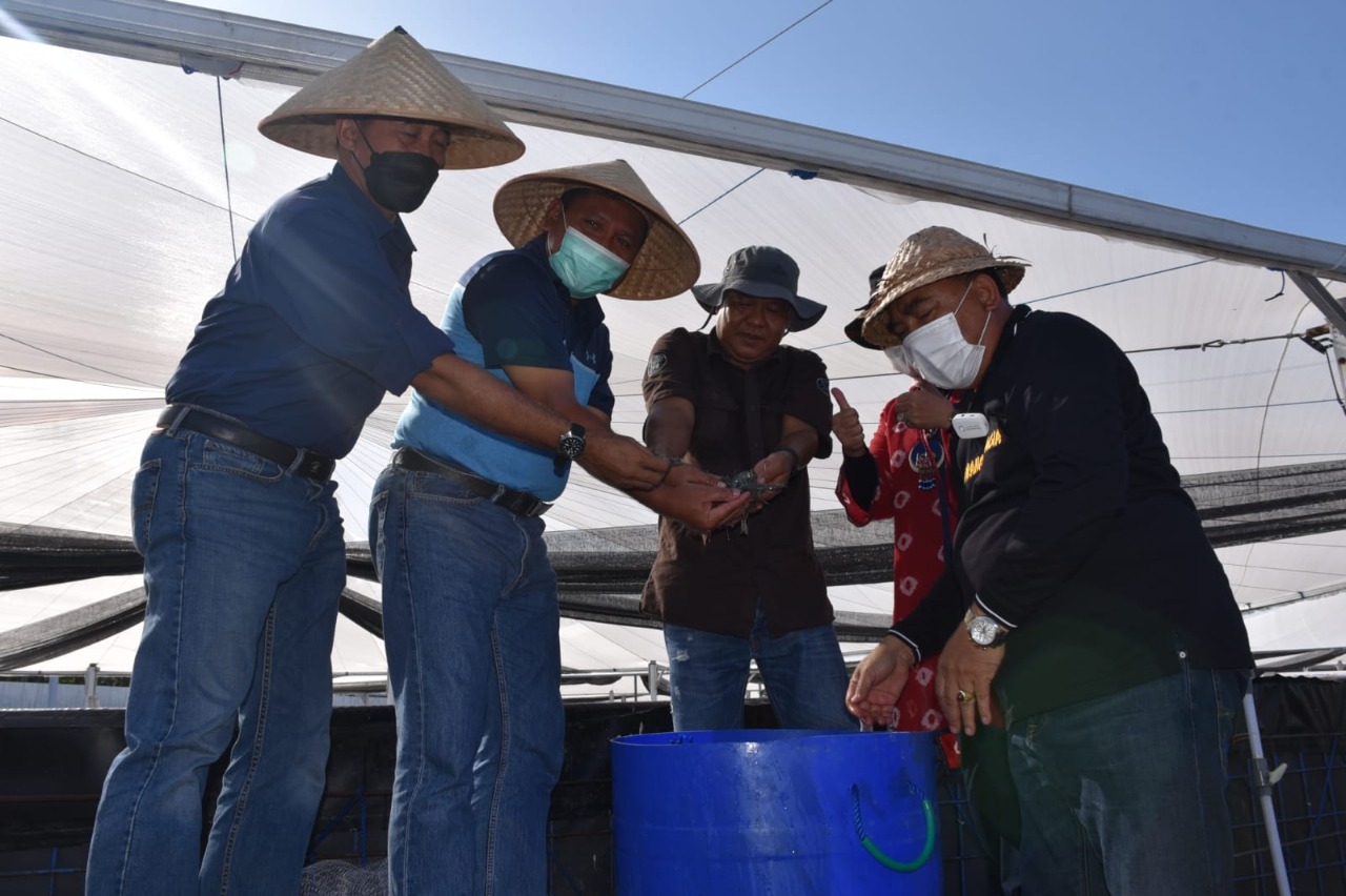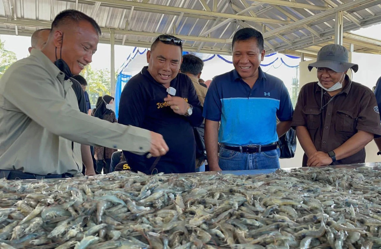 Wakil Kepala Staf TNI AL (Wakasal) Laksdya TNI Ahmadi Heri Purwono menghadiri panen perdana budidaya udang Vaname Program Indonesian Naval Aquagriculture Program (INAP) di Kampung Bahari Nusantara Jembrana Bali, Sabtu (16/4/2021).
