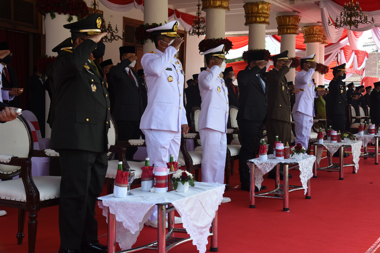Gubernur Jawa Timur (Gub Jatim) Khofifah Indar Parawansa menjadi inspektur Upacara pada peringatan yang dihadiri oleh para pejabat Forum Komunikasi Pimpinan Daerah (Forkopimda) Jawa Timur ini.