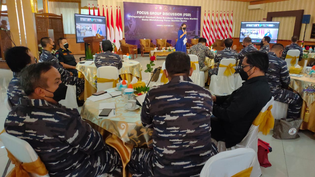 Dirrektur Personel Akademi Angkatan Laut (Dirpers AAL), Kolonel Laut (E) Prasetyo Tri Yudanto mewakili Gubernur AAL, Mayjend TNI (Mar) Nur Alamsyah, S.E., M.M., M.Tr (Han)., mengikuti Focus Group Discussion (FGD) tentang Surabaya sebagai Kota Maritim yang digelar Komando Pembinaan Doktrin, Pendidikan dan Latihan TNI AL (Kodiklatal) di Joglo Gedung Moeljadi, Kodiklatal, Bumimoro, Surabaya, Senin (25/10).