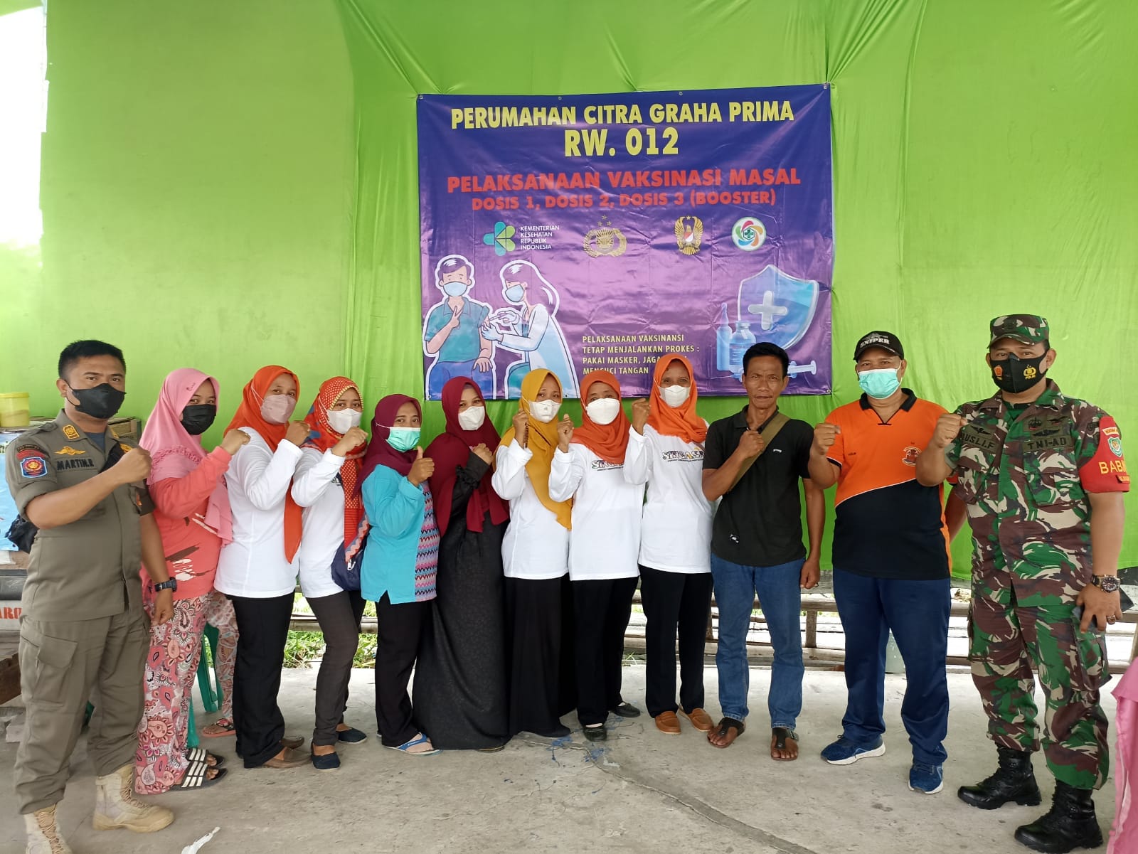 Demi mencegah penyebaran virus Covid-19 dan ikut serta mensukseskan program pemerintah dalam memutuskan mata rantai Covid-19, Ketua RW 012 Endi Ruhita bersama para Ketua RT 01s/d 05 bersama para jajarannya, Forum Peduli Lingkungan (FPL ) Graha Prima serta Ibu ibu PKK dan Pos Yandu RW 012 mengadakan Vaksinasi Kepada warganya yang di Bantu oleh para tenaga kesehatan dari Puskesmas kecamatan Jonggol kabupaten Bogor dengan penanggung jawab dr.Adi selaku Kepala Puskesmas Jonggol.