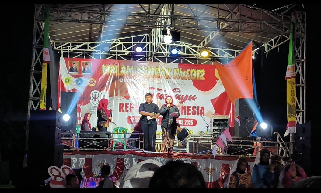 Dalam rangka memperingati Hari Ulang Tahun ke-80 Kemerdekaan Republik Indonesia, Warga RW 12 Perumahan Citra Graha Prima Kecamatan Jonggol, Kabupaten Bogor menggelar Malam Puncak 17 Agustus pada Sabtu malam (30/08) yang di Prakarsai oleh Ibu ibu PKK dan Karang Taruna RW 12. Acara yang dipusatkan di Balai RW 12 tersebut berlangsung meriah dan penuh antusiasme masyarakat.Sabtu 30 Agustus 2025 pukul 20’00 WIB