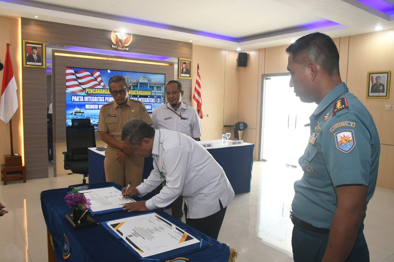 Pada kesempatan tersebut Danlanal Banyuwangi bersama Tim Zona Integritas dan Reformasi Birokrasi Lanal Banyuwangi menandatangani Pakta Integritas yang disaksikan oleh Ketua Pengadilan Negeri Banyuwangi H. Moehammad Pandji Santoso, S.H., M.H., Sekretaris Inspektorat Pemkab Banyuwangi Muhammad Nurowi, S.Sos, M.Si., dan Plt II Kepala KPPN Banyuwangi Agus Triono.